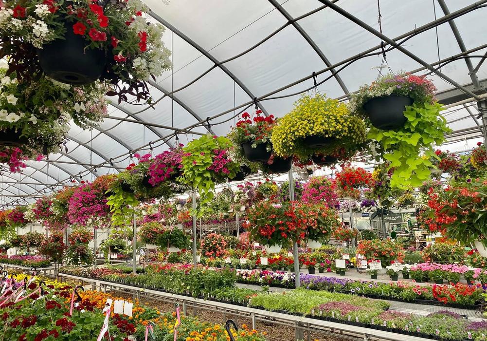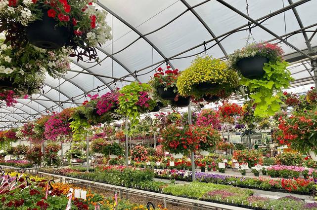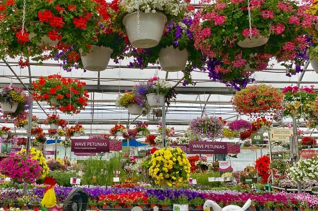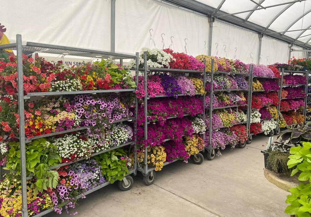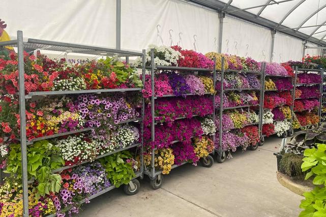 Carts full of hanging baskets