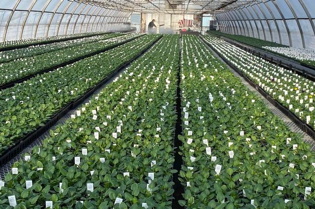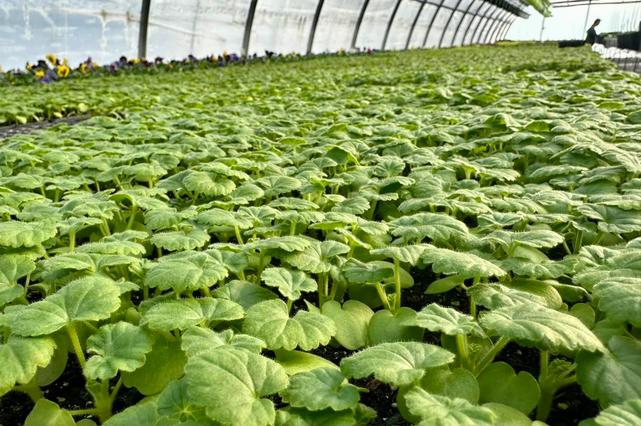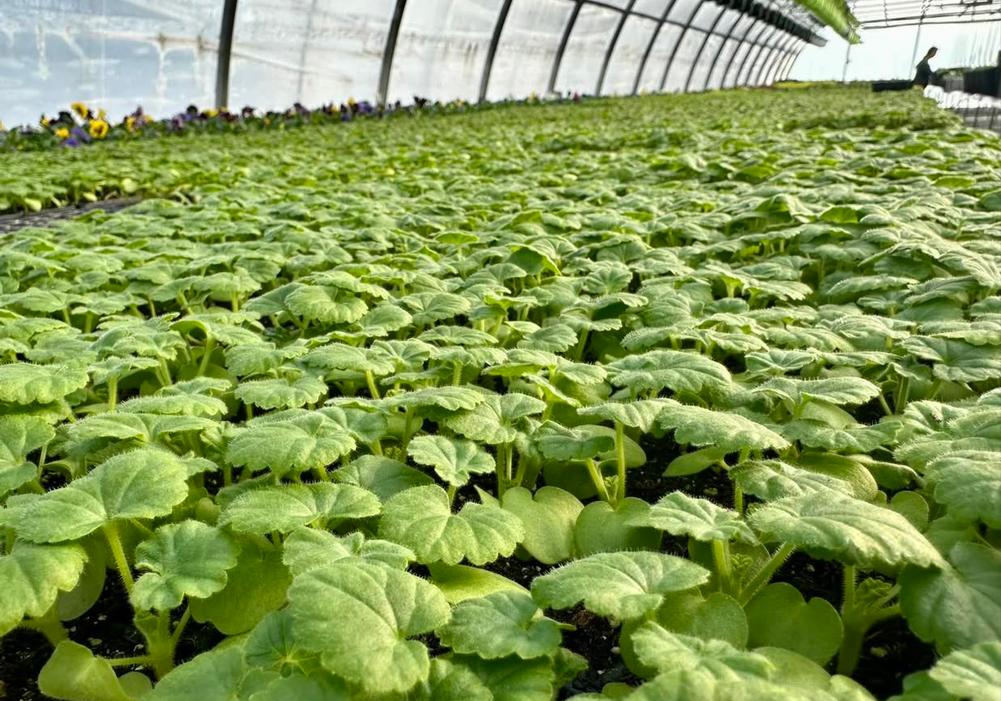 Greenhouse full of seed geraniums at the farm